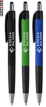 Promotional stylus pens and custom iPens. They're new. They're exciting. And the perfect multi-use "tool" for multi-tasking. The generic iPen, or stylus pen combination, has emerged as the premier writing instrument to bridge today's technology with pen and ink. Using the ability of silicon to mimic the human finger, it also reduces the need to clean your touch screen. There are two common implementations of the "touch" portion of these custom pens, or the "stylus" portion as we'd commonly refer to it. What has become the most common is adding a silicon "nib" to the writing-end of the pen so that the stylus is functional simply by retracting the pen with either the push-button or a twist, depending on the style of pen. The other type places the silicon "finger tip" on the end opposite the writing end. This is very popular with twist pens. Either implementation you choose will accomplish putting a stylish custom iPen, or Pen Stylus Combination, into the hands of people who will appreciate its utility.