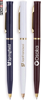 Lots of companies take advantage of the advertising power of personalized retractable ballpoint bulk logo pens. PENSRUS.com satisfies every personality and every need with their huge selection of personalized engraved pens along with stick and click, ballpoint and rollerball retractable pens in bulk. Brand them with your company name and image, and you've got click pens in bulk with instant recognition, along with long-lasting promotional power. Company logo pens also take the guesswork out of who took the pens when they migrate.